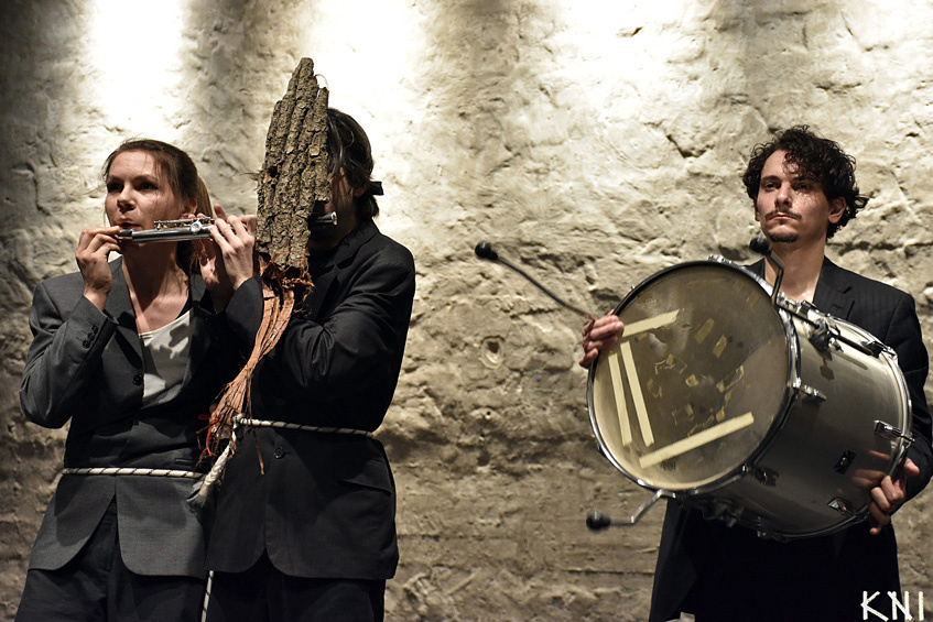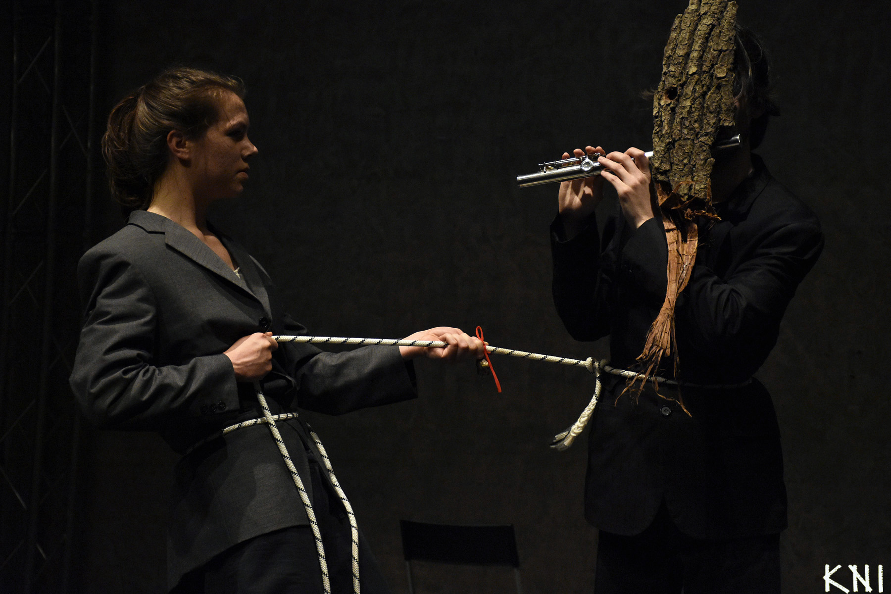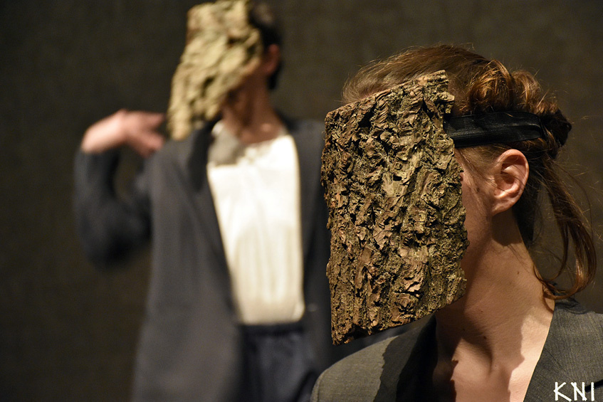 Jók, sőt kifejezetten találóak, mert e hideg formalizmushoz illőek – a szintén nó színházi ihletésű – egyszemű, fakéregből kialakított álarcok. Ügyes, ahogyan a végig meghatározó minimalista mozgás és gesztusnyelv picit nyit a lendületesebb kortárs tánc és harcművészeti elemek, illetve a zárlatban a magyar néptánc, a lassú forgatós felé, és nincsenek benne zökkenők”